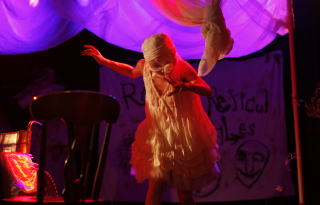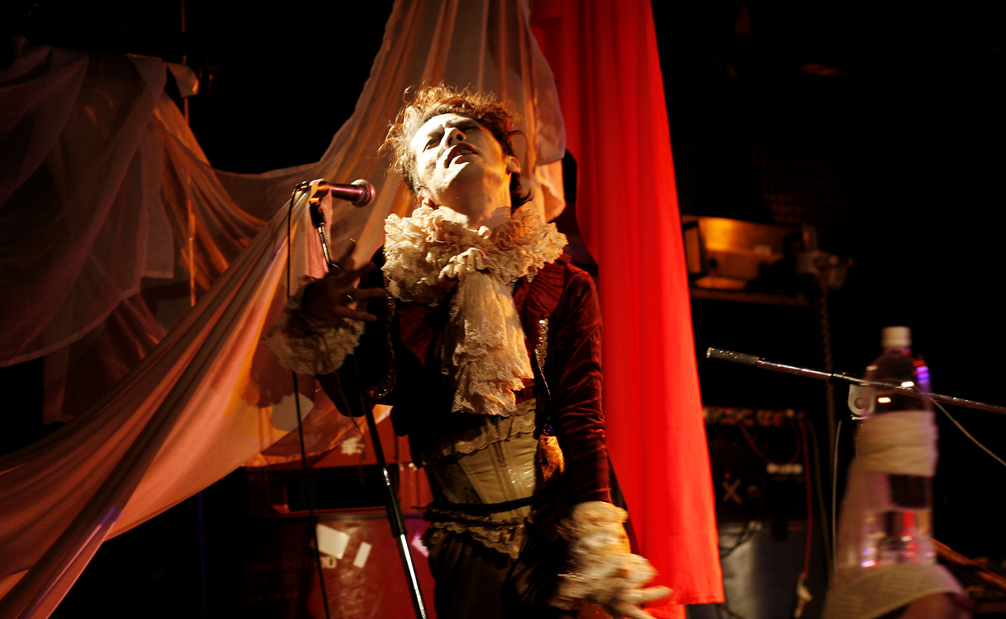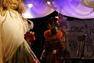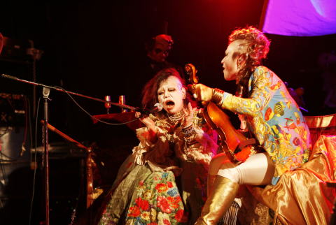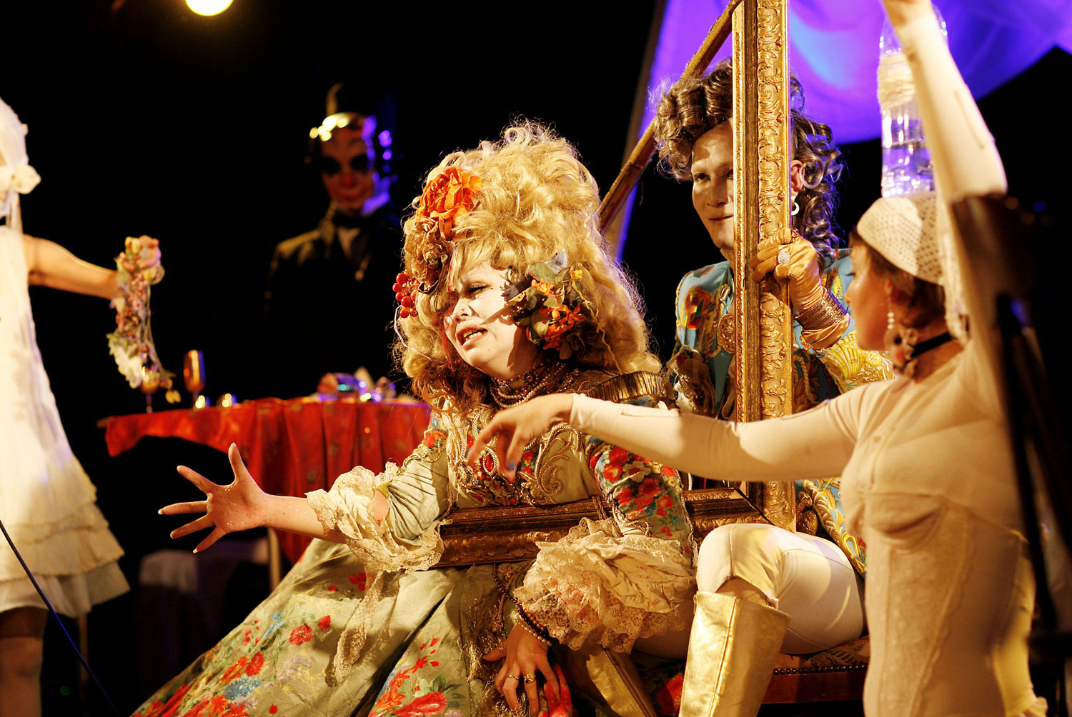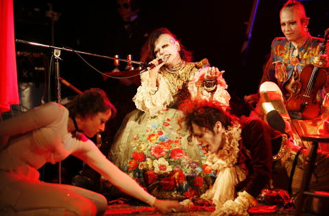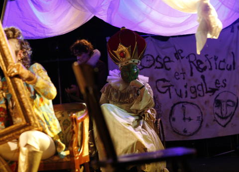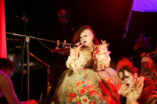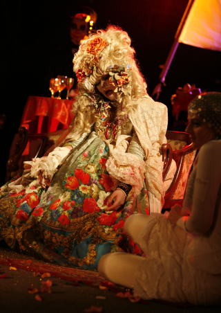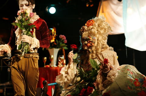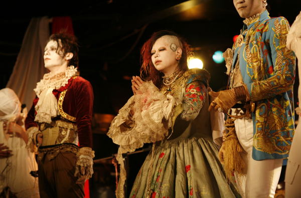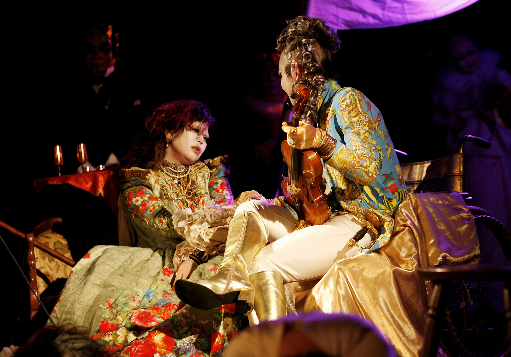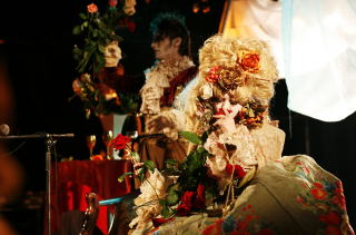 子気味悪い司会が酔っ払いながら案内し始まったこの夜の御演目は 「駄目殿下登場の巻。」 金粉きらめき薔薇は舞い散り豪華絢爛に幸せの3時を過ごすはつかの間。 カエルの王様登場で一気にまっさかさま。 無理やりな縁談の宴に身悶えるギグルス。 叫び続けるロウズ。 カエルの王様は正体があばかれ、禿ヲ妃はカエルになるしの、混沌の中 王宮ロマネスクは 支離滅裂に悪い夢をひたはしりました。
